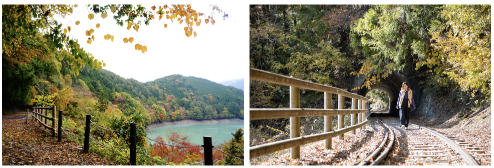 「廃線小路」と呼ばれるこの遊歩道は、線路の上を歩くことができるコースで、短いトンネルもあり、ちょっとした冒険気分でハイキングが楽しめます。
