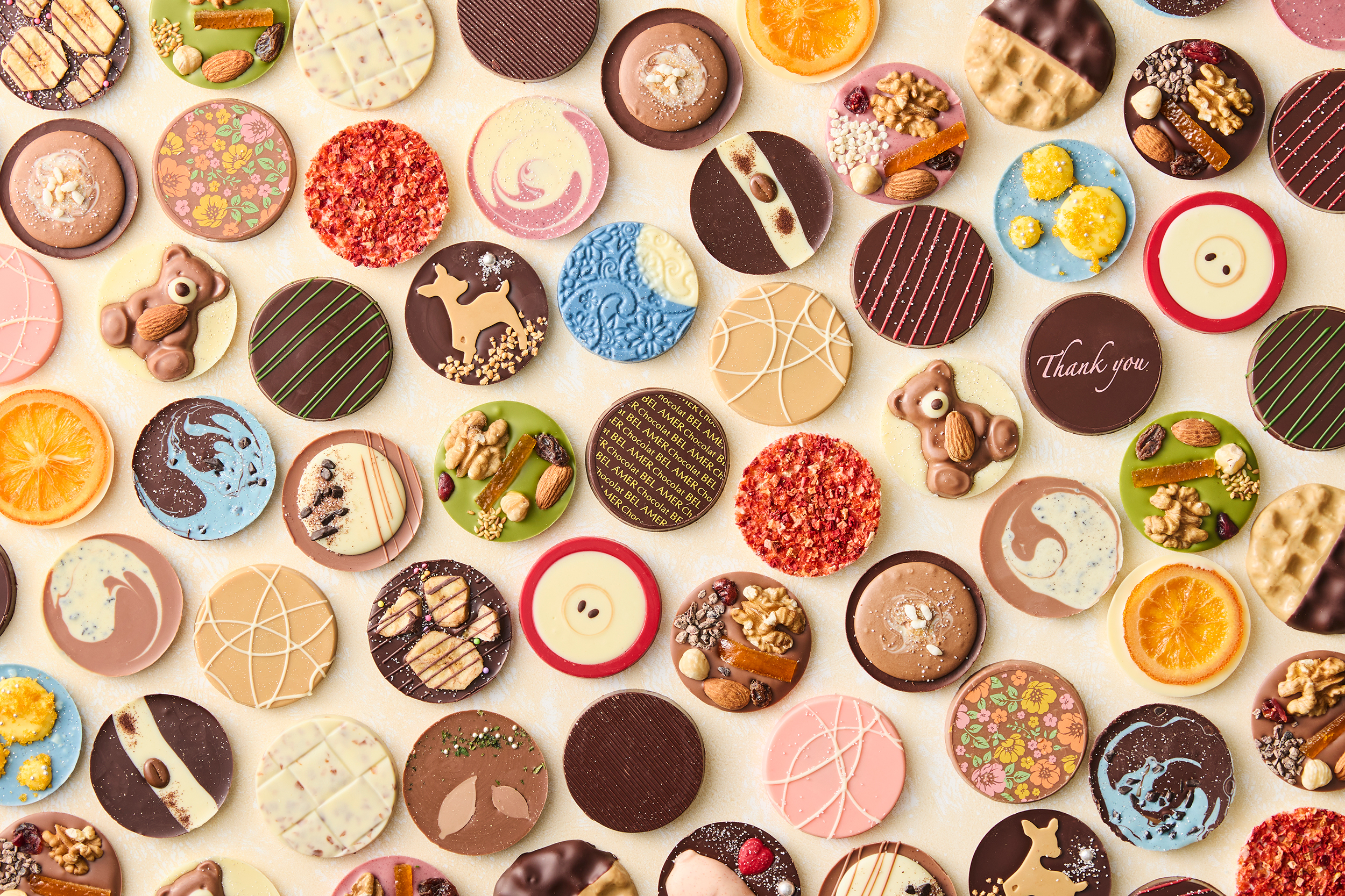 直径約6cmの丸い板チョコレート、看板商品のパレショコラ