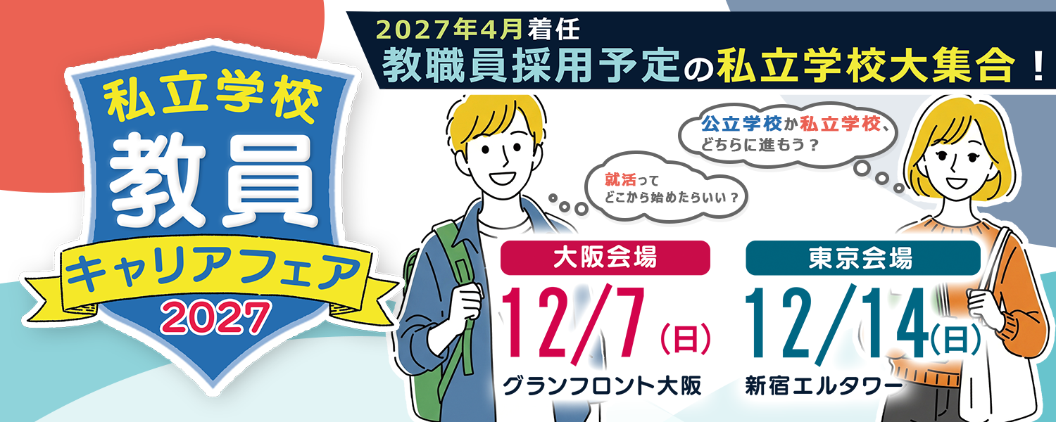 『先生になりたい』を叶える第一歩。2025年12月、大阪&東京で「私立学校 教員キャリアフェア 2027」開催!