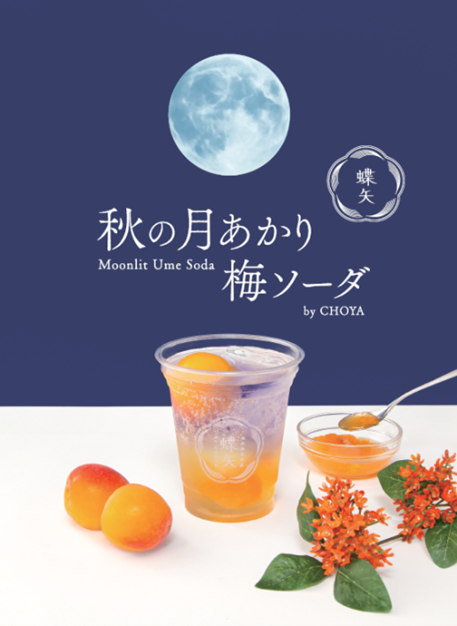 CHOYA shops株式会社(本社:大阪府羽曳野市、社長:菅健太郎)が運営する梅体験専門店 「蝶矢」(以下、蝶矢)は、9月20日(土)〜11月10日(月)の期間中、ノンアルコールテイクアウトドリンク「秋の月あかり 梅ソーダ」を販売いたします。