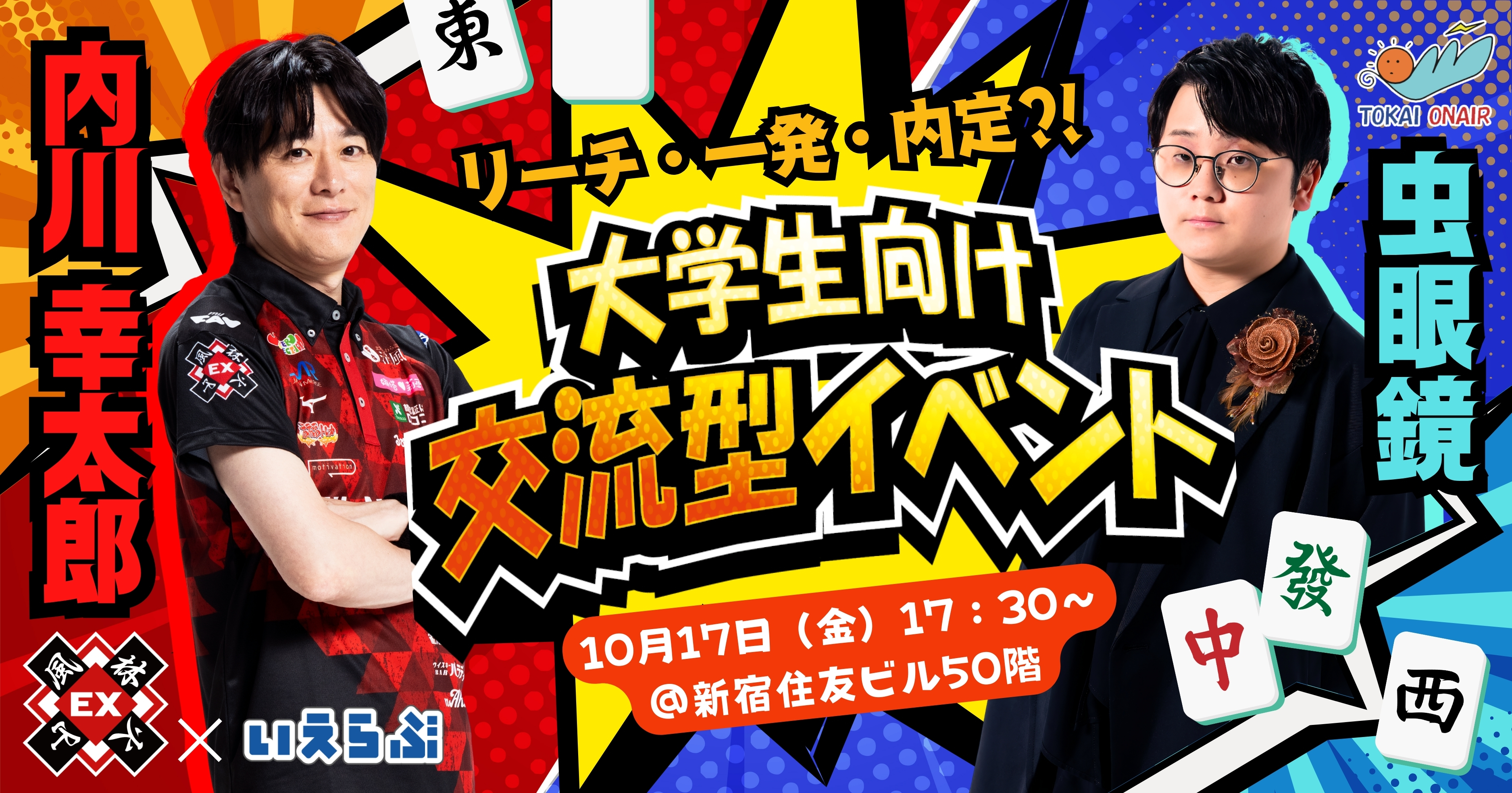 内川幸太郎(EX風林火山)×虫眼鏡(東海オンエア)登壇!直接会って話せる大学生向け麻雀イベント開催!|いえらぶGROUP