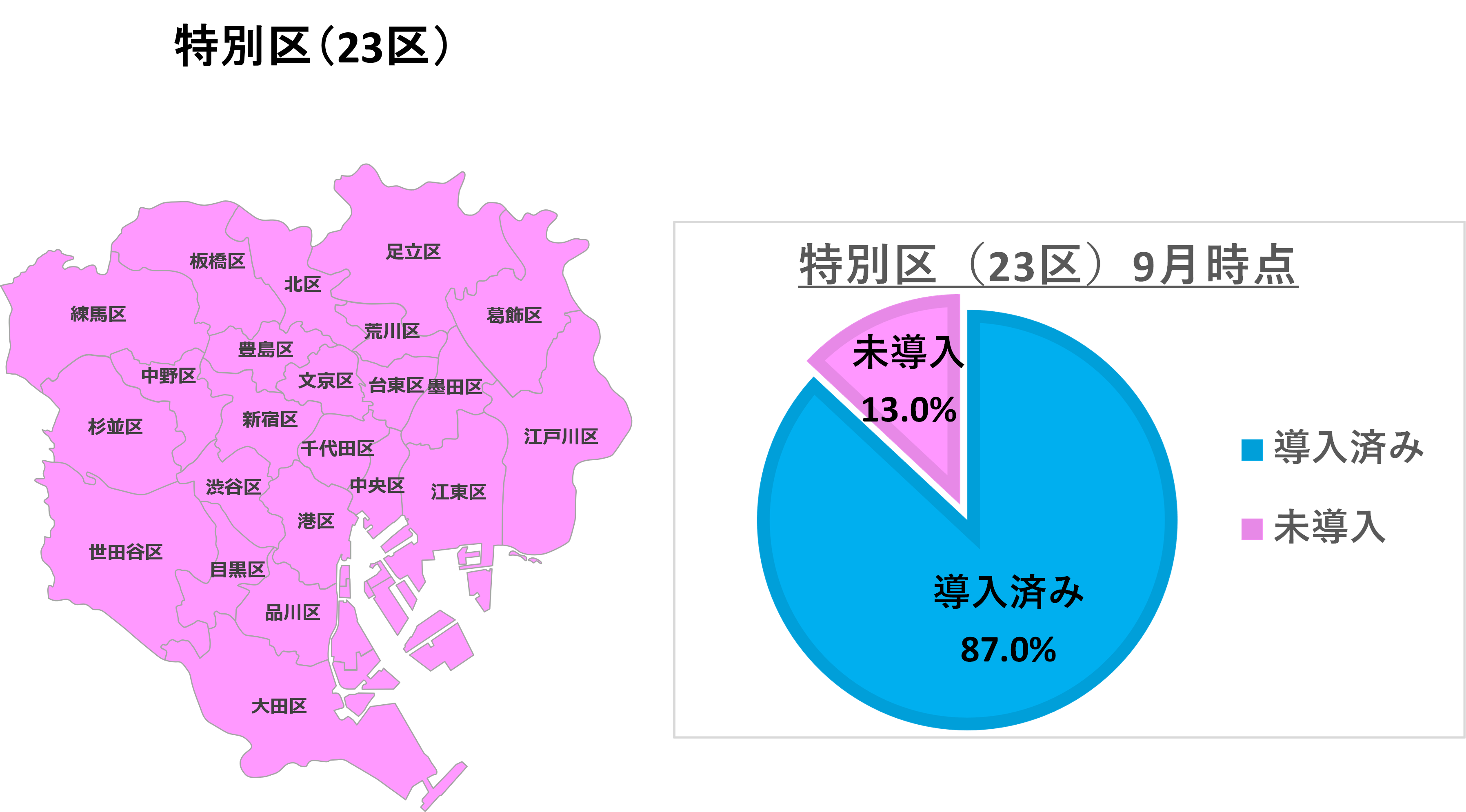 ・特別区(23区)での導入率は87%に上り、前回調査より39ポイントアップ