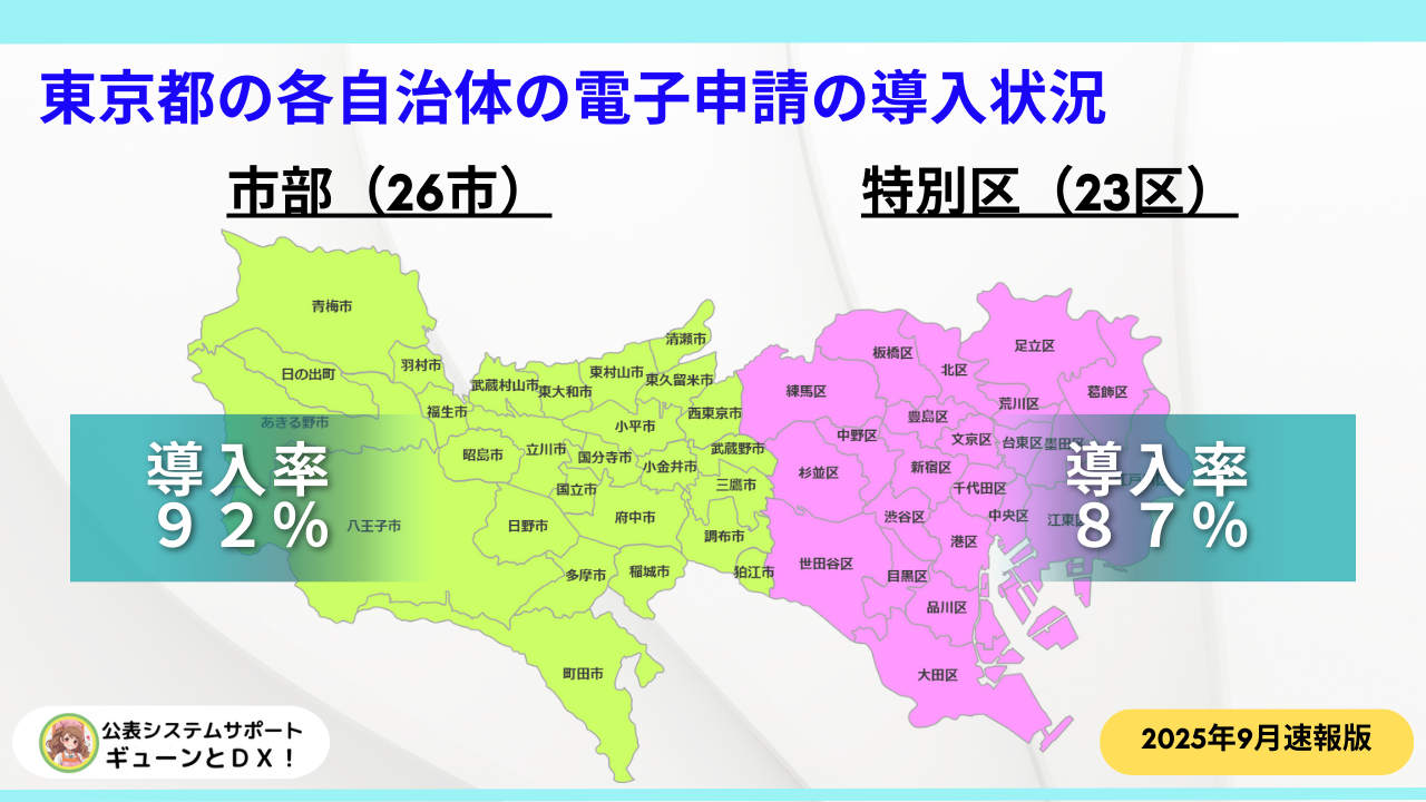 介護業界のDX化を支援する公表システムサポート株式会社(東京都新宿区)では、2025年9月に、東京都の特別区(23区)と市部(26市)を対象に、介護事業所の電子申請の導入状況を調査しました。