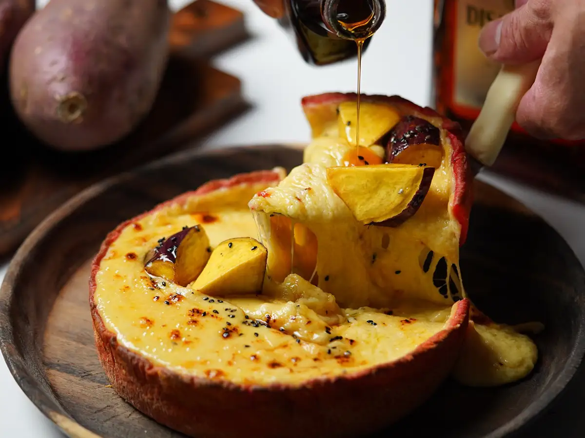 「さつまいものシカゴピザ」は味覚はもちろん、視覚や嗅覚でも楽しめる体験型グルメです。しっとりとしたさつまいもペーストと濃厚なチーズが口の中で混ざり合い、秋らしい甘さとコクが広がります。