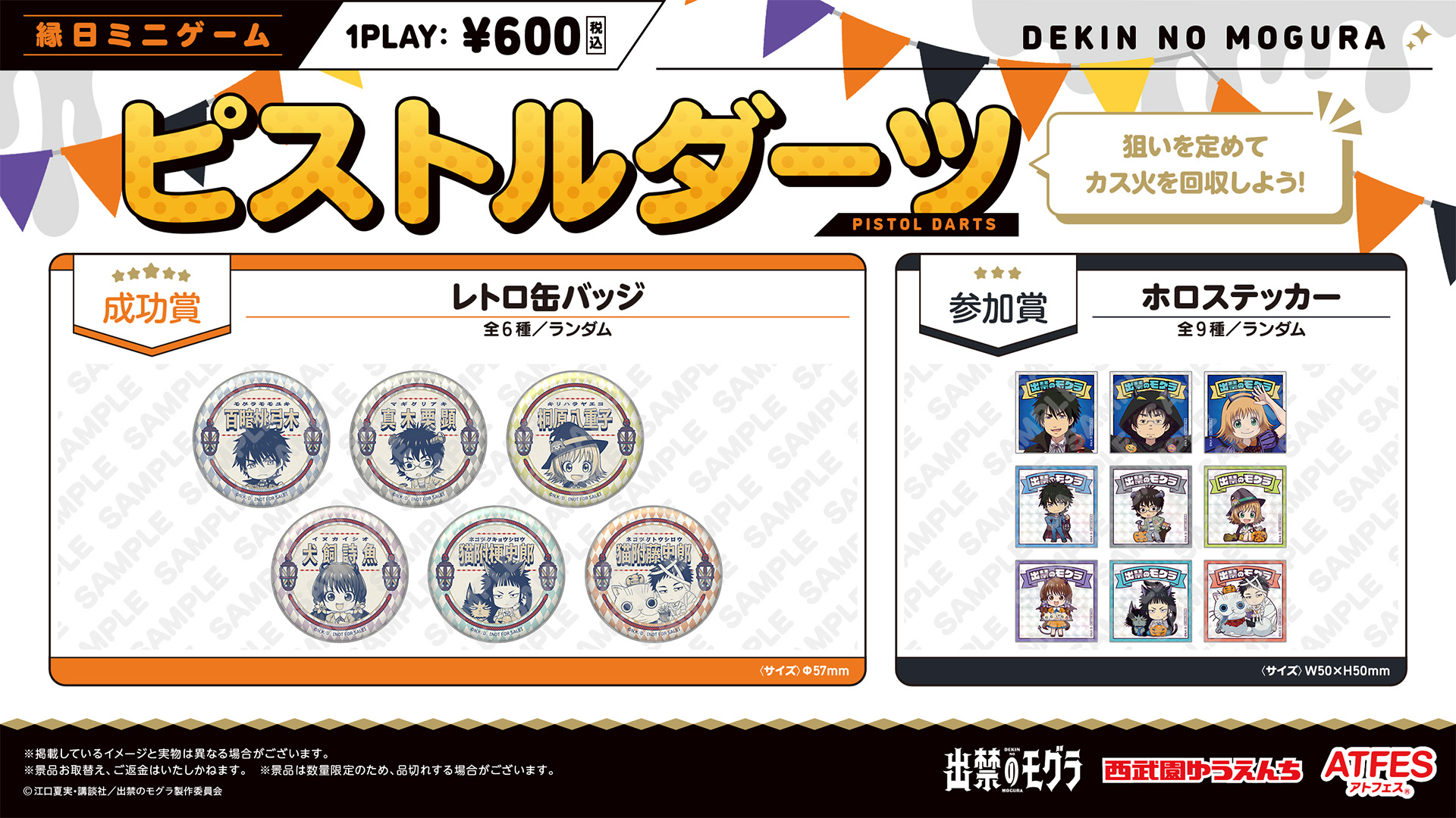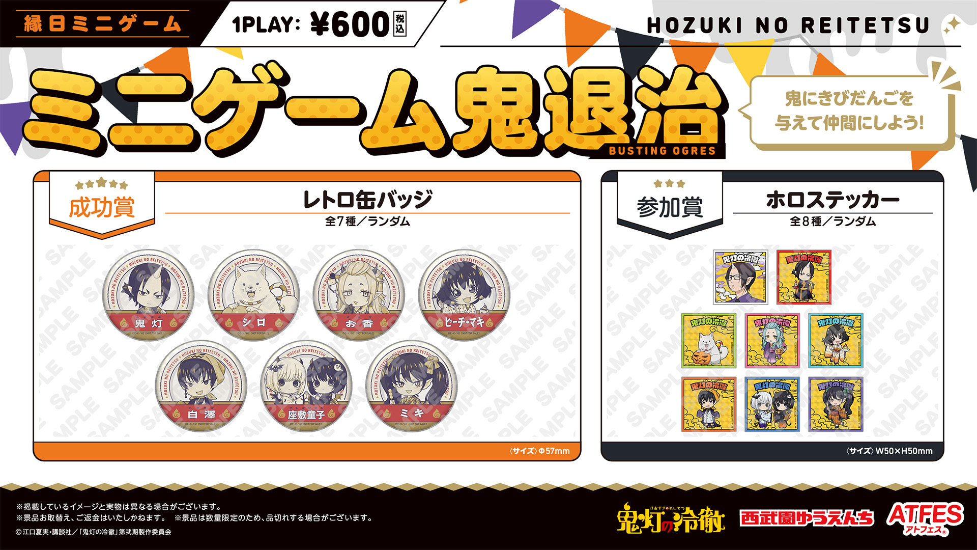 縁日ゲームでは、ハロウィンパーティを楽しんでいるモグラたちに集まる幽霊の灯に狙いを定めて回収する「出禁のモグラ ピストルダーツ」や、鬼にきびだんごを与えて仲間にする「鬼灯の冷徹 ミニゲーム鬼退治」が登場!ここでしか手に入らない景品をご用意しています。