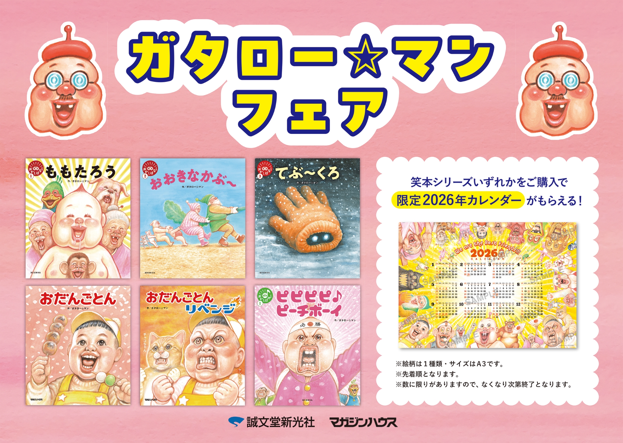 ※フェアの展開商品・冊数・期間は店舗によって異なります。 - ノベルティ:ガタロー☆マン 限定2026年カレンダー(全1種・A3サイズ)