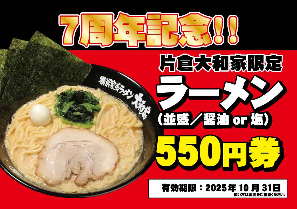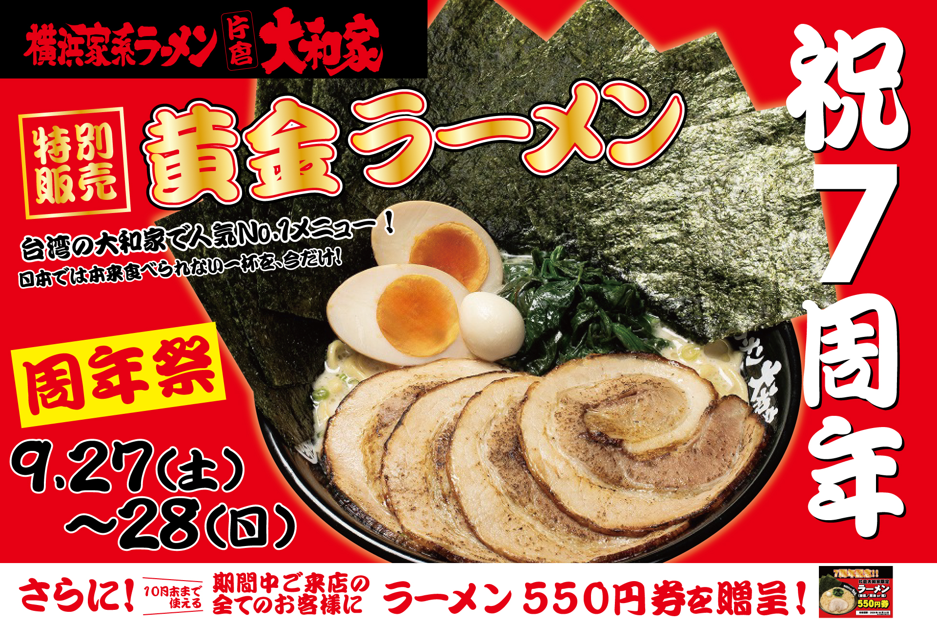 【祝7周年】片倉大和家が周年祭を開催!黄金ラーメン特別販売!