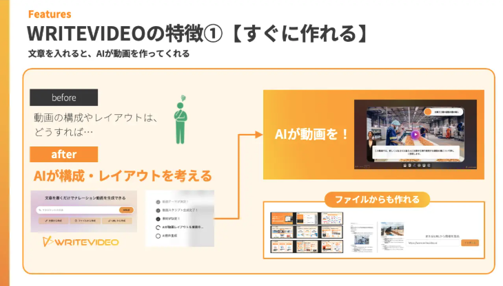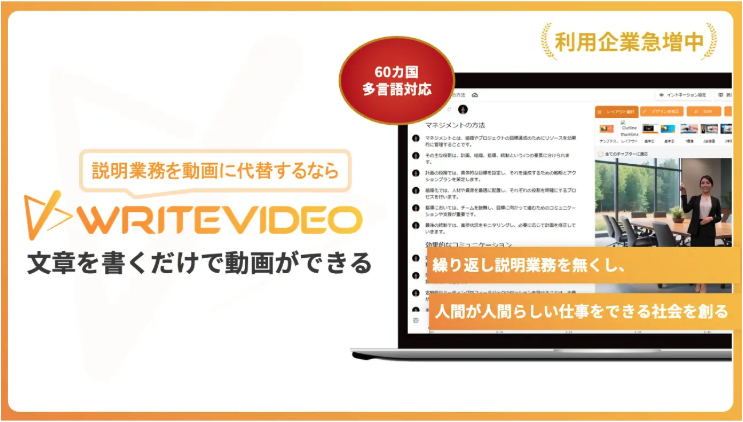 WriteVideoは、各業界で発生する繰り返し説明業務をAIで自動化する次世代のサービスです。