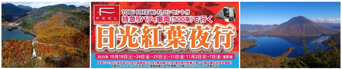 ▼詳細は当社旅行サイト「国内ツアー」の『日光紅葉夜行23:45プラン』特設ページをご覧ください。