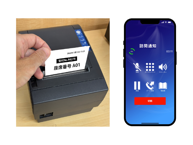 受付にて認証が完了すると担当者へ着信にてゲスト名・認証した場所を通知します。