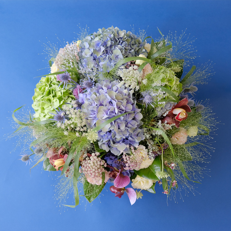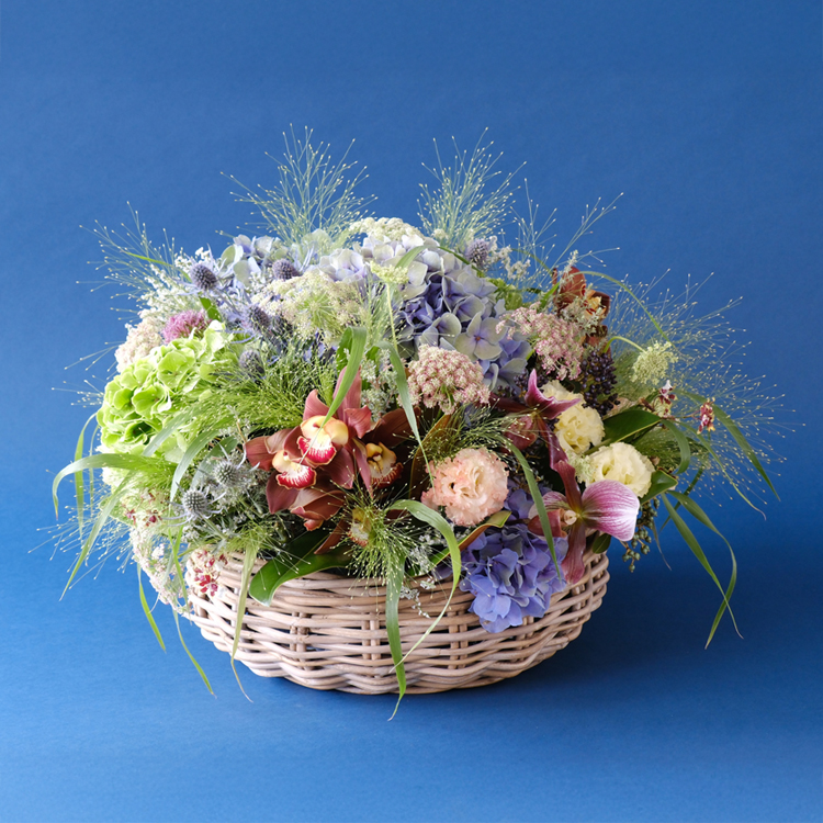 オルセー美術館でクロード・モネの「睡蓮の池、緑のハーモニー」「青い睡蓮」を観た新井は、モネが晩年をすごしたジヴェルニーの庭に迷い込み、あてもなく彷徨っているような不思議な気持ちになったという。それらの絵画をオマージュした優雅で幻想的な雰囲気のアレンジメント。