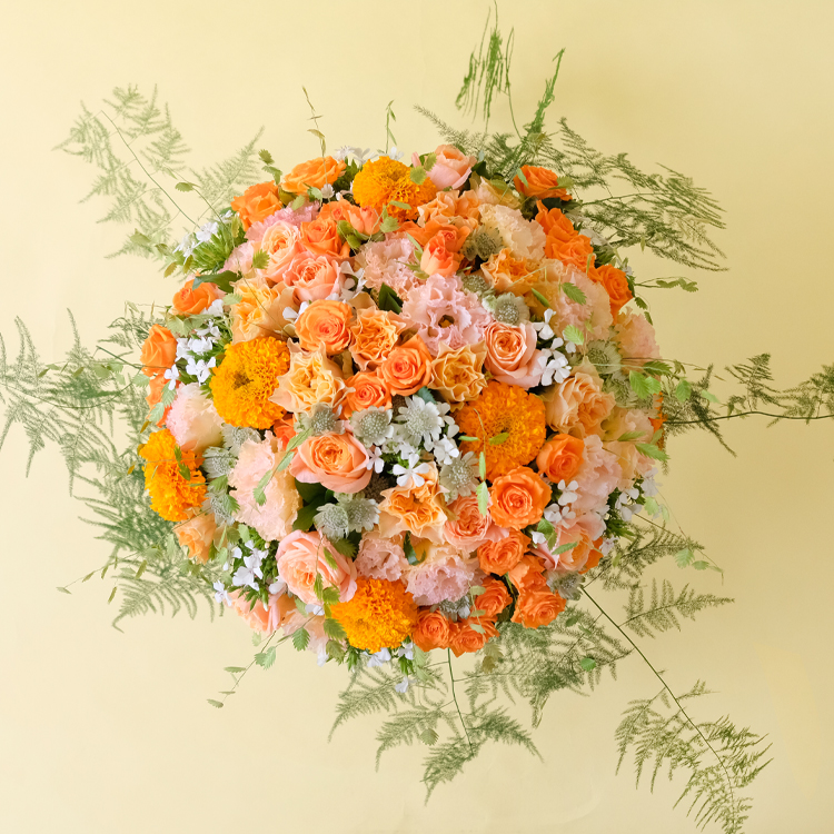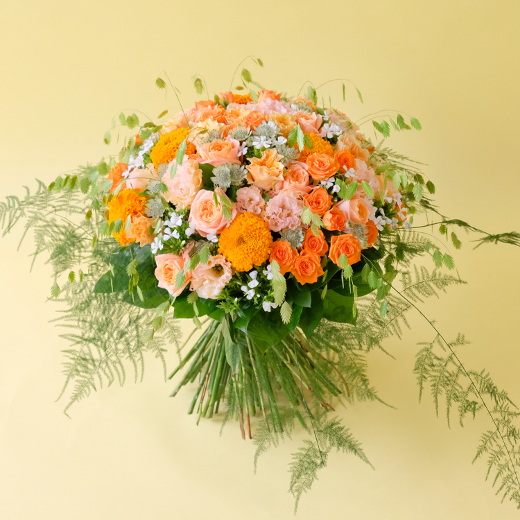 仲間と戦い抜いた大会での経験や作品のすべてが、今もなお鮮明に脳裏に焼き付いていると市村は言う。その熱い思いを鮮やかなオレンジ色のブーケで表現した。