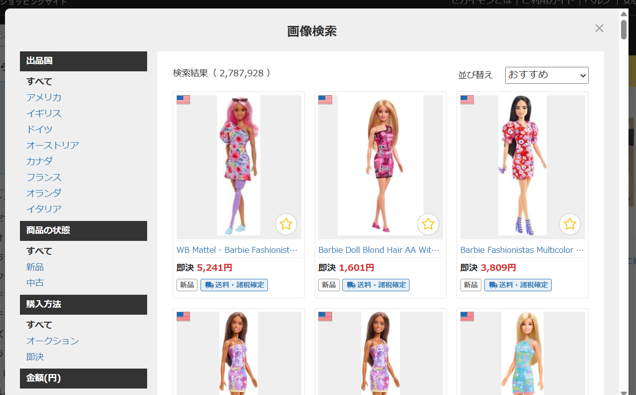 世界最大級のマーケットプレイスeBayから日本語・日本円で商品を購入できる日本最大級の海外ショッピングサイト「セカイモン」(運営:株式会社ショップエアライン)は、「AI画像検索」機能の提供を開始いたしました。これまで商品名などの具体的な手がかりが少なく、膨大な点数の中から検索して見つけ出すことの難しかった商品もAIが画像を解析して類似商品を提案します。