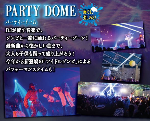 懐かしの曲から最新曲までゾンビと一緒に踊れるパーティーゾーンを演出。キレッキレなゾンビダンサーの圧巻のダンスパフォーマンスをはじめ、