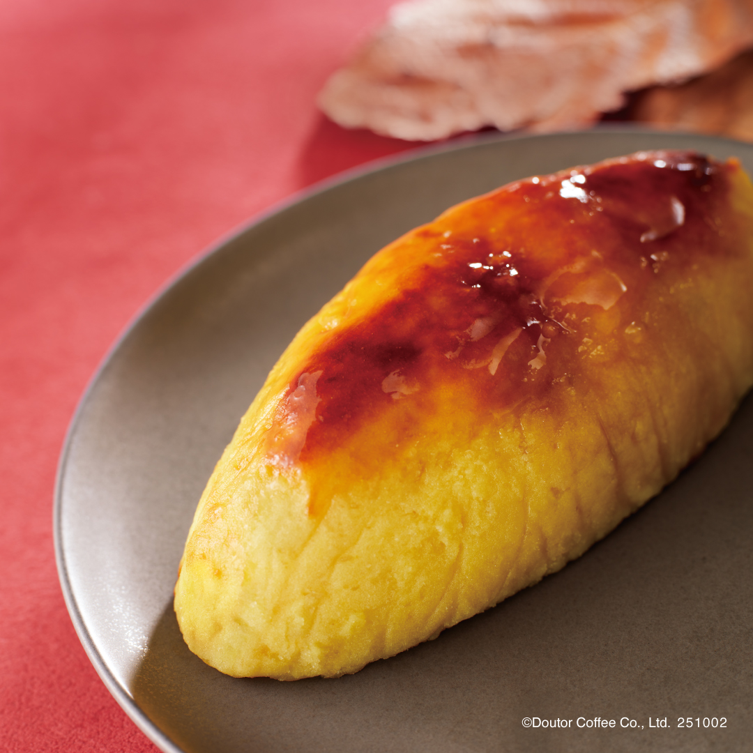 中にはやさしい甘さのカスタードクリームを閉じ込め、冷やすとしっとり&ぷるんとした口当たりに。温めるとほくほく&とろけるような食感に変化します。