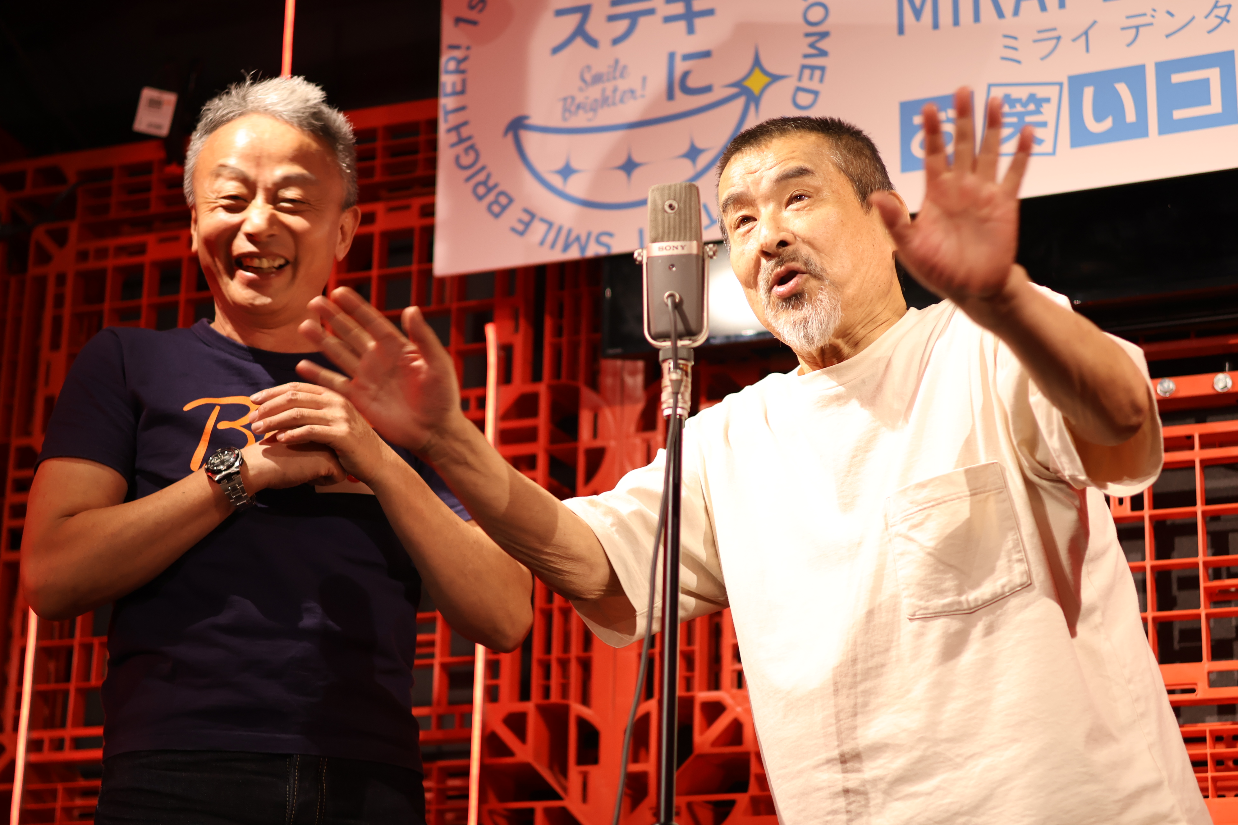 2025年9月16日、浅草26BARにて第2回「ミライデンタルクリニックお笑いコンテスト」が開催されました。会場は観客の笑いと熱気に包まれ、見事優勝したのは即席結成コンビ「へのへのもへじ」さんです。ラストには師匠方の飛び入り参加や新作ネタ披露もあり、笑いの絶えない豪華なステージとなりました。