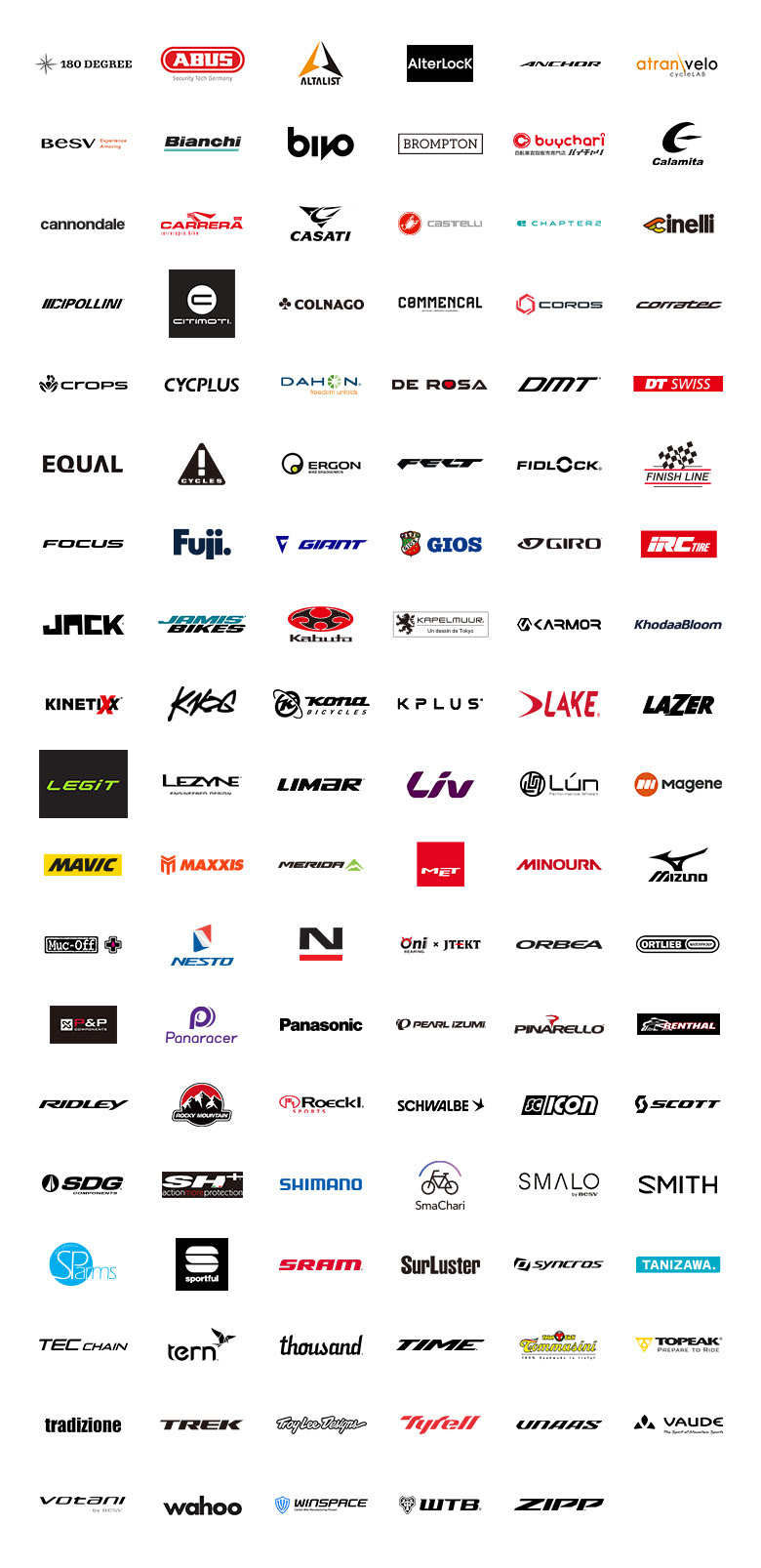 株式会社アキボウ, 株式会社 ACTIONSPORTS, 井上ゴム工業株式会社, 株式会社インターテック, WINSPACE JAPAN株式会社, 株式会社ウエイブワン, (株)エイアンドエフ, 株式会社エス・エム・ジェイ, NCD株式会社, MVCJapan株式会社, 株式会社オージーケーカブト, オルベアジャパン合同会社, 株式会社カワシマサイクルサプライ, 株式会社キルシュベルク, 株式会社グロータック, グローブライド株式会社, 株式会社クロップス, サイクルヨーロッパジャパン株式会社, 株式会社ジェイテクト, JAMIS JAPAN, 株式会社ジオライドジャパン, シマノセールス株式会社, 株式会社ジャイアント, シュアラスター株式会社, 株式会社ジョブインターナショナル, 株式会社スコットジャパン, ダイアテック株式会社, 株式会社 Champion System Japan, 株式会社ツインズ, DT Swiss, トレック・ジャパン株式会社, 日直商会, 株式会社ネクストスケープ, 株式会社パールイズミ, バイチャリ株式会社, パナソニック サイクルテック株式会社, パナレーサー, 株式会社ピーアールインターナショナル, 株式会社フォレストアドベンチャー, 株式会社フカヤ, ブリヂストンサイクル株式会社, ブロンプトンジャパン株式会社, 株式会社BESV JAPAN, ホダカ株式会社, 株式会社ポディウム, 本田技研工業株式会社, マヴィックジャパン株式会社, 株式会社マルイ, ミズタニ自転車株式会社, 株式会社 Many'S, メリダジャパン株式会社, ライトウェイプロダクツジャパン株式会社, 株式会社ワイ・インターナショナル