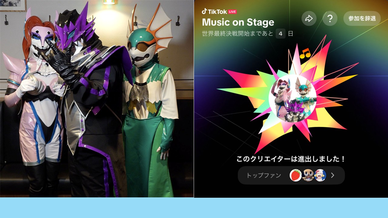 TikTok LIVE提携ライバー事務所「TimeTicket Production(タイムチケットプロダクション)」(運営会社:株式会社タイムチケット 東京都渋谷区、代表取締役社長 各務正人)に所属する『セイレーンバイブス&カカムーチョ』は、2025年9月11日(木)~15日(月・祝)にかけて開催されたTikTok公式イベント「Music On Stage」の世界大会におけるアジアパシフィック地域決戦に、日本チームとして出場しました。