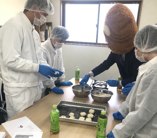 生徒自らが課題感を持って考え学習を深めることを目的に例年実施されている課題解決型の探究授業「刀プロジェクト」。複数の民間事業者が参加する中、弊社では食の安心安全をテーマに添加物や自然栽培についての講義や、清涼飲料水やドレッシングなどの加工品が化学合成添加物で作られる過程を見せるケミカルクッキングを行いました。その後食の安全をどのように実現していくかという課題に応える形で、生徒が栄養価を考慮した「味噌コロッケ」を考案しました。学内でのプレゼンで高い評価を得たことや生徒のさらなる探究の思いもあり、授業だけで終わらせるのではなく、形にするところまでを体験してもらう目的で生徒が考案した「味噌コロッケ」を同校文化祭で限定発売いたします。