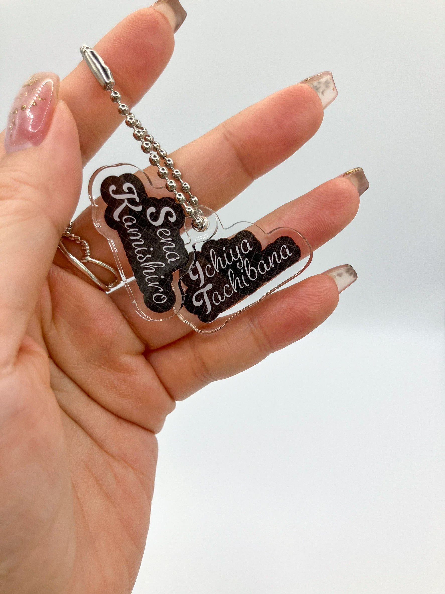 ネーム部分にチェーンを通すと、お名前キーホルダーとしてもお楽しみいただけます。