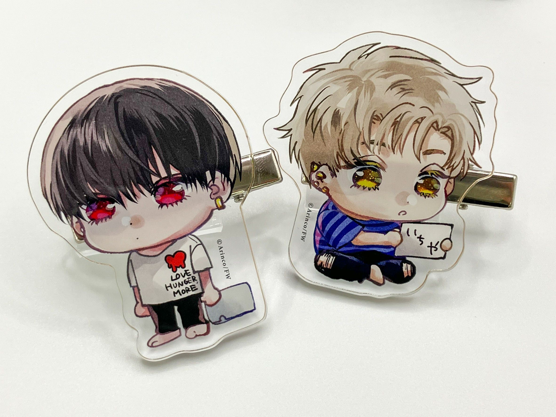 Arinco先生が描いた瀬凪と壱哉のとっても可愛いミニキャラがヘアピンになりました。