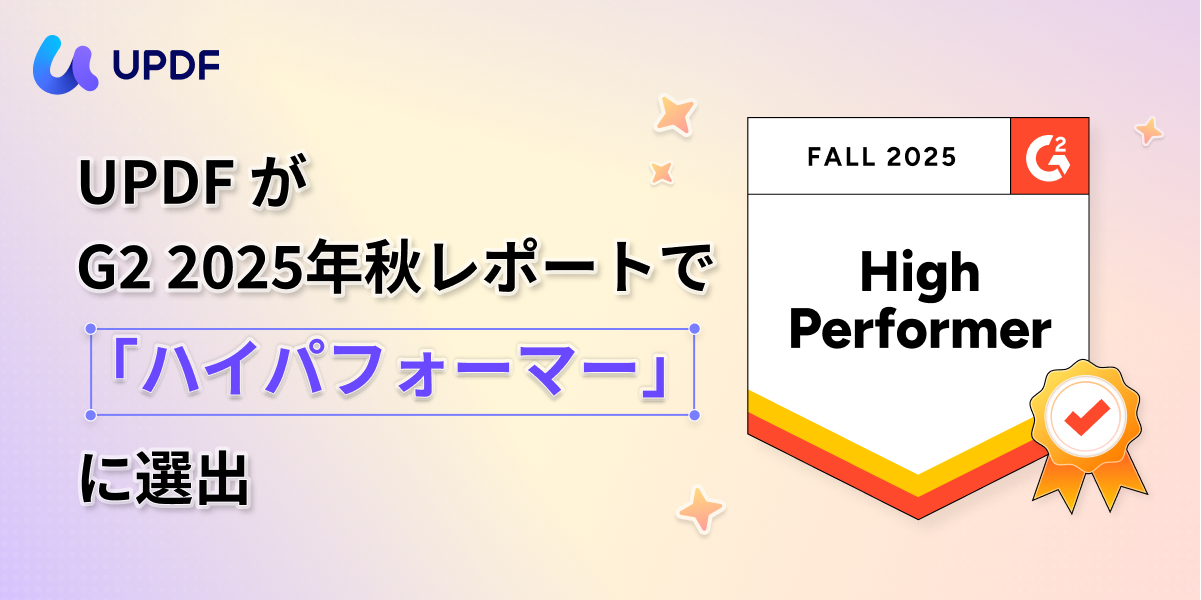 Superaceが提供するPDF編集・管理ツール「UPDF」が、G2 2025年秋レポートにおいて「High Performer」に選ばれました。本製品は直感的な操作性とAI搭載機能により、個人ユーザーから学生、クリエイター、ビジネスチームまで、幅広い層で日常の文書業務を効率化することが評価されています。