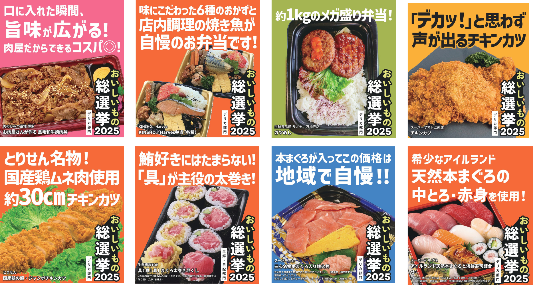 なお、現在開催中のスーパーマーケットグルメの祭典「トクバイ おいしいもの総選挙 2025」では、驚きのコスパ弁当やメガ盛り弁当、注目のチキンカツ、寿司が複数エントリーされています。