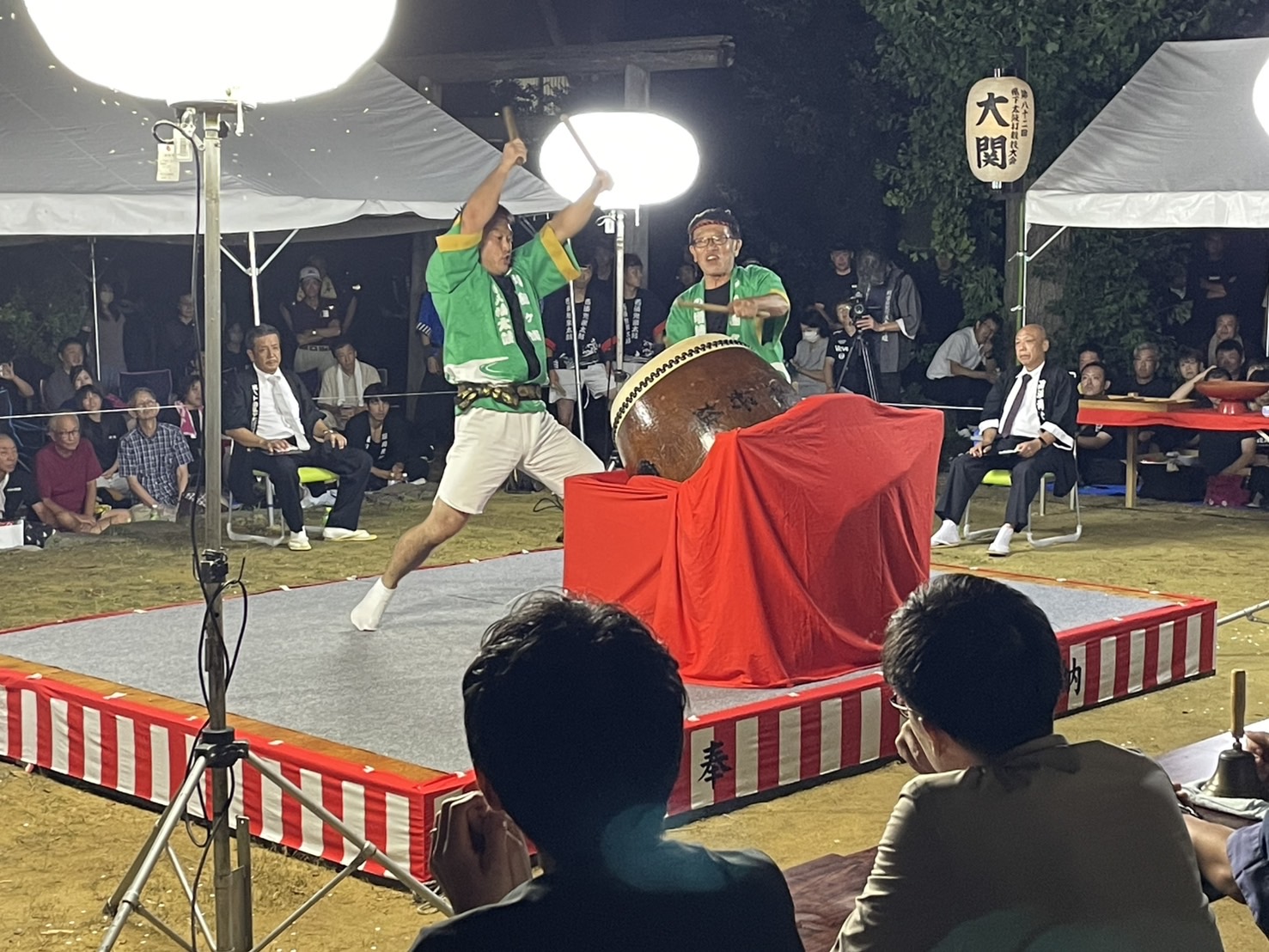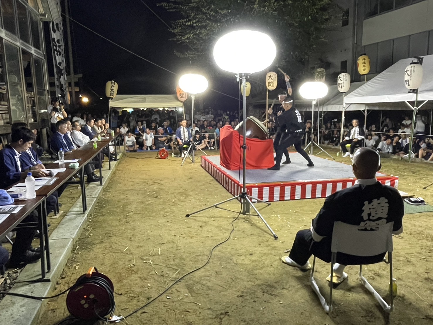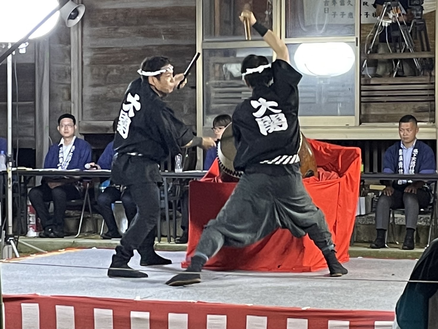 本大会は昭和6年(1931年)に始まり、戦中の一部期間と新型コロナ禍の3年間を除き、90年以上にわたり続いています。県内外から約50組が出場し、境内には独特の緊張感が漂います。審査は一組ずつ太鼓を打ち込む形式で、観客の掛け声が響き渡る中、力強い演奏が夜遅くまで行われました。