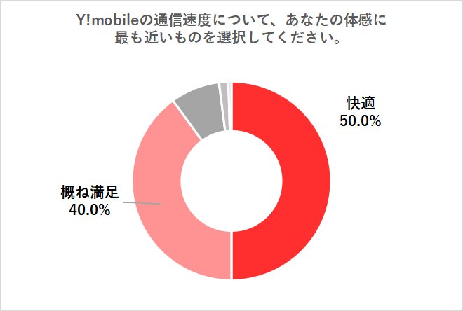 今回の調査では、ワイモバイル利用者の約9割が通信速度に満足していることが確認されました。