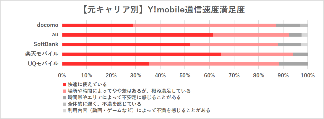 乗り換え元キャリア別:au・楽天からの移行は満足度が高い