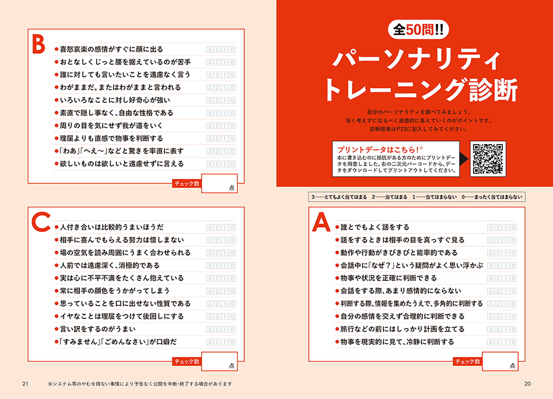 いるクライアントに対して聞いている内容を基に、簡単な50の質問に置き換えて診断します。