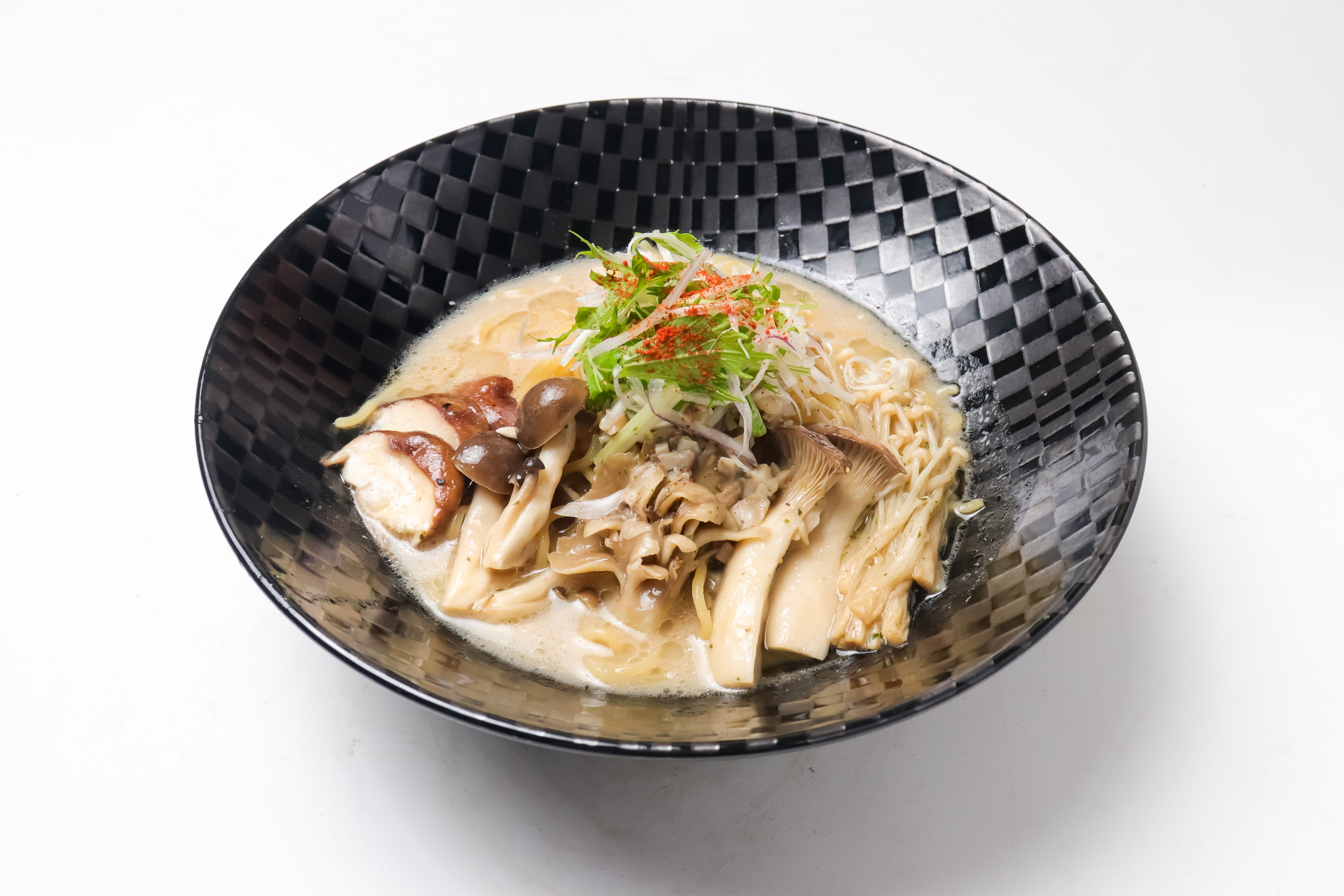 クリーミーで芳醇なポルチーニの香りを加えた豚骨スープに、秋を彩る5種類のキノコが絶妙に調和。使用するキノコは、しいたけ、しめじ、まいたけ、えのき、エリンギの5種類。それぞれが持つ風味や食感のハーモニーが、まるで秋の味覚を一皿に詰め込んだような贅沢な味わいです。クリームパスタのような感覚でお楽しみください。