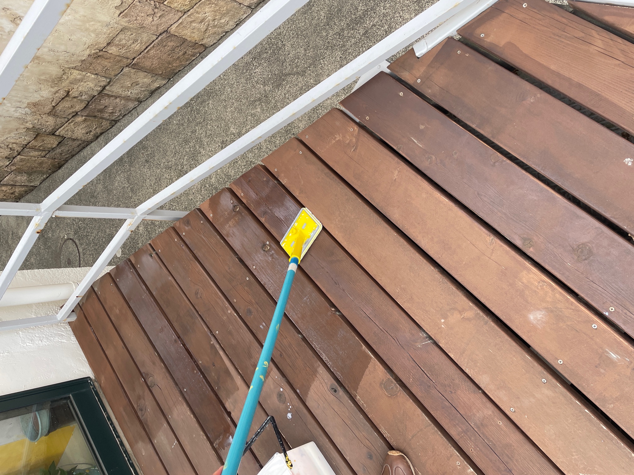 藻が生えたウッドデッキを水で洗浄するだけで!