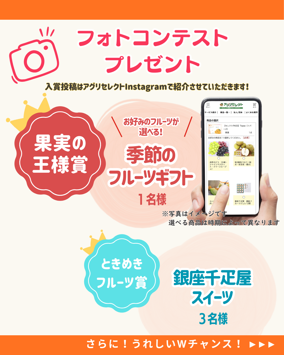 - Instagramアカウントを保有し、@agri_selectをフォローしている方