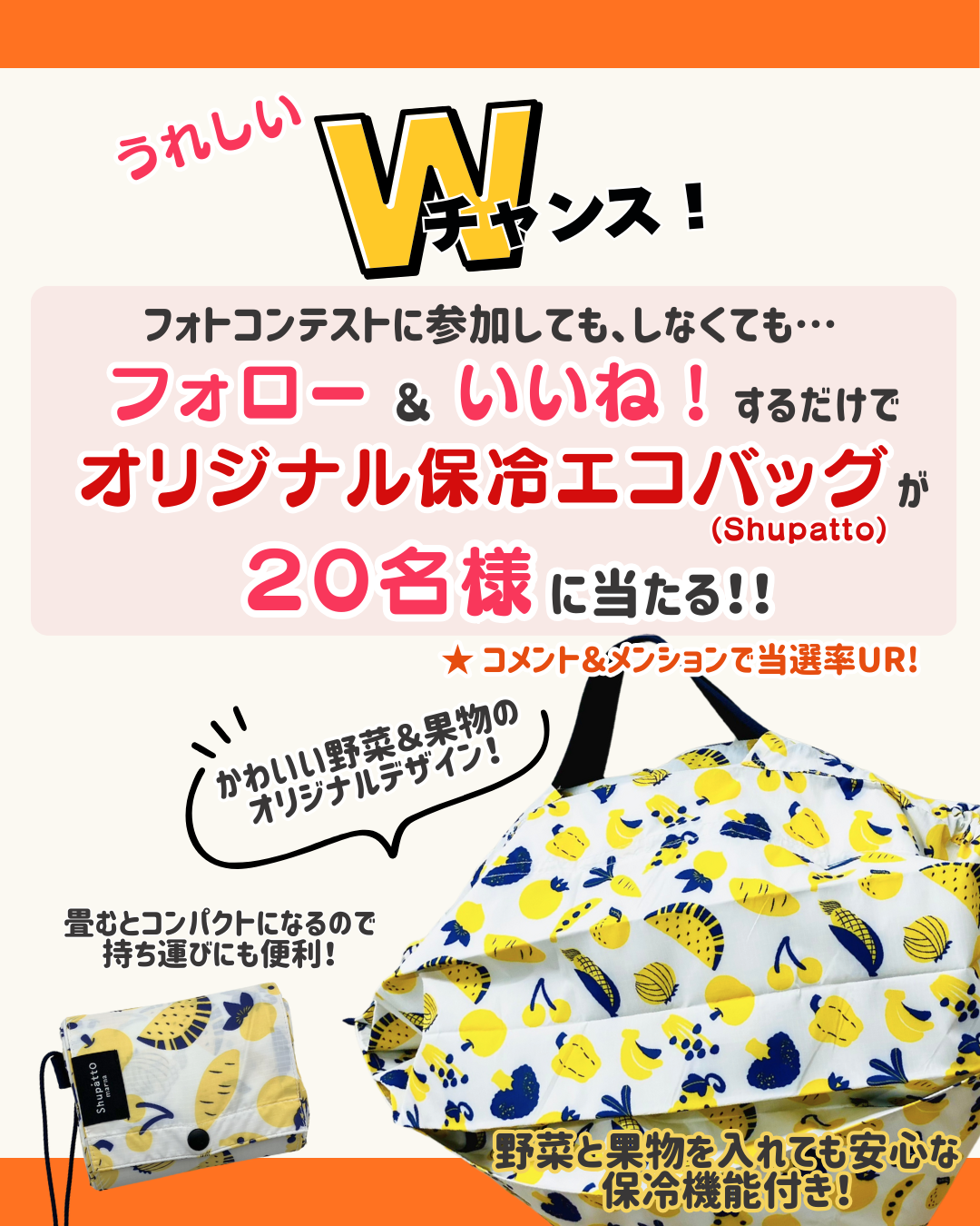 写真投稿で選べるフルーツギフトや銀座千疋屋スイーツが当たる! さらに「フォロー&いいね」でオリジナル保冷エコバッグが抽選で20名様に当たるWチャンス企画も同時開催。