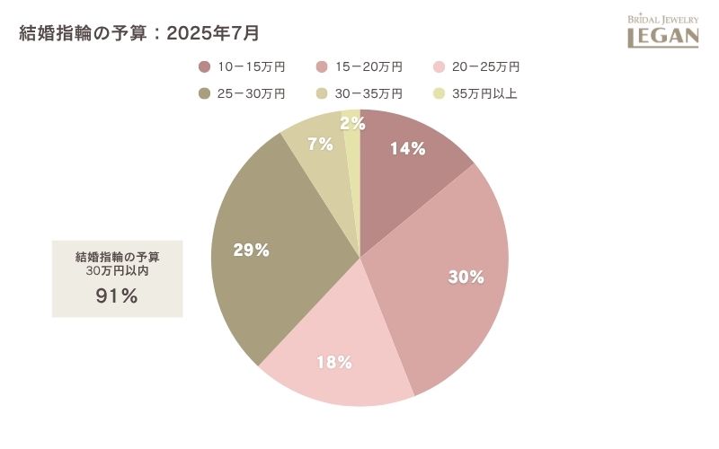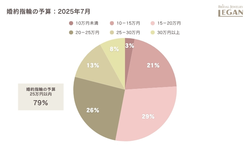 札幌店・旭川店・帯広店の3店舗を運営する婚約指輪・結婚指輪の専門店「BRIDAL JEWELRY LEGAN(ブライダルジュエリーレガン)」(運営会社:有限会社レガン 所在地:北海道岩見沢市 代表取締役社長:奥野賢一)は、2025年7月にご来店されたお客様を対象に婚約指輪および結婚指輪の予算に関するアンケートを実施致しました。