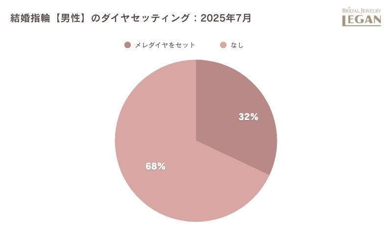 男性は、全ての方がベースはダイヤ無しのプレーンリングをご選択ですが、リングにメレダイヤを追加する方が32%いらっしゃいました。