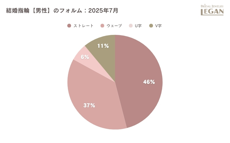 男性の人気フォルムは、ストレートが46%、ウェーブが37%と人気です。続いてV字が11%でした。