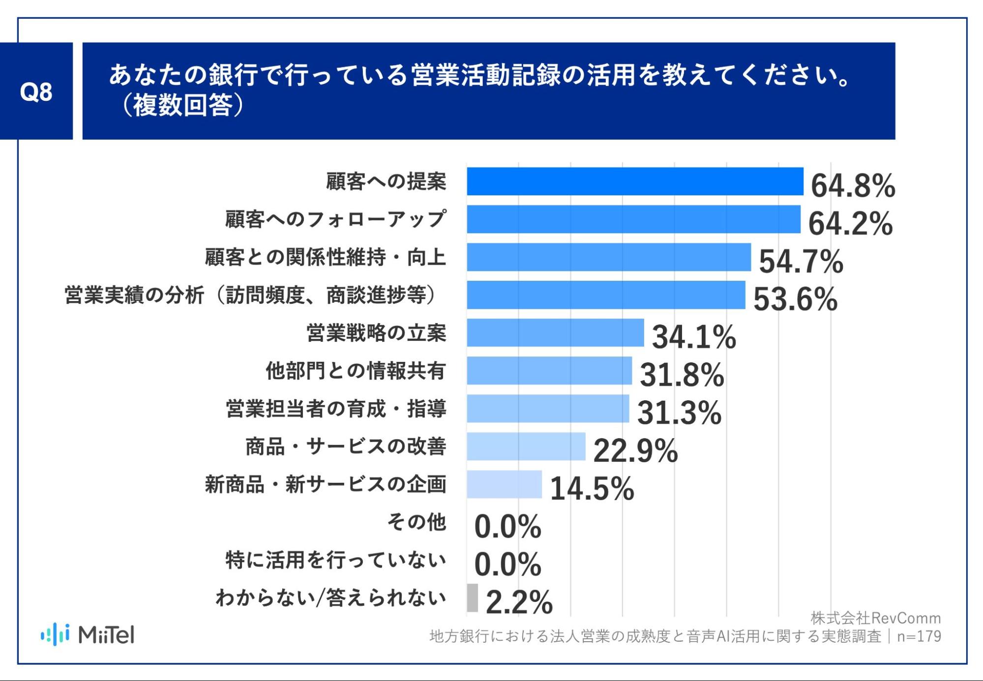Q8:あなたの銀行で行っている営業活動記録の活用を教えてください。(複数回答)