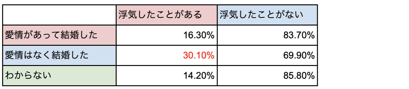 → 「愛情はなく結婚した人」の浮気率は30%
