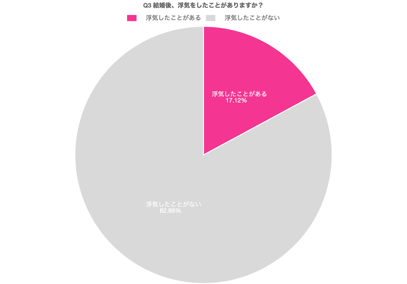 「浮気したことがある」と回答した人は17%程度。10人に1〜2人の割合で「浮気をしたことがある」という結果になりました。