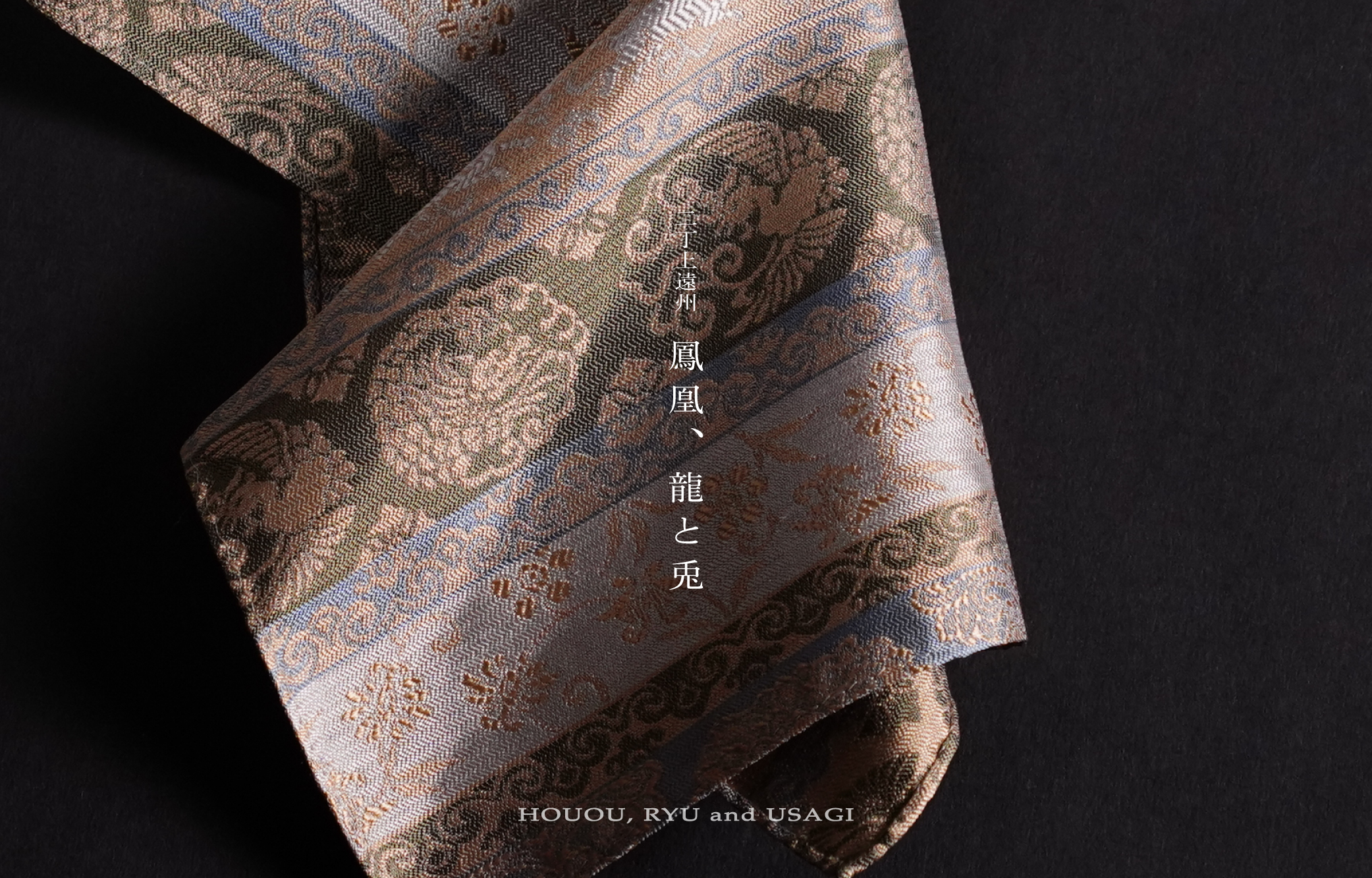 天翔ける龍、静かに舞う鳳凰、そして地に遊ぶ兎。神話に名を刻む霊獣たちが一堂に会した異例の吉祥文様。力と調和、気品と愛らしさが共鳴し、華やかなだけでなく、装いに奥行きをもたらします。