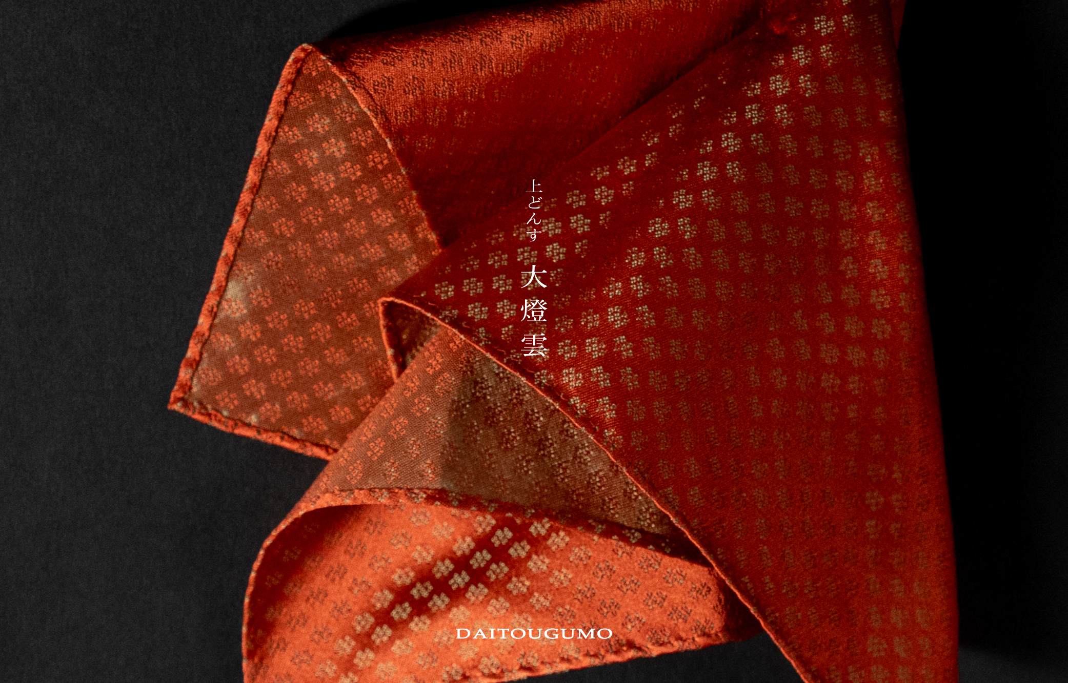 千年の意匠を宿した掛け軸に使う美しい裂地を、利休の見立ての心で現代の装いに新しい形で提案。Japanラグジュアリーの逸品として誕生したポケットチーフが大阪万博でも大人気。