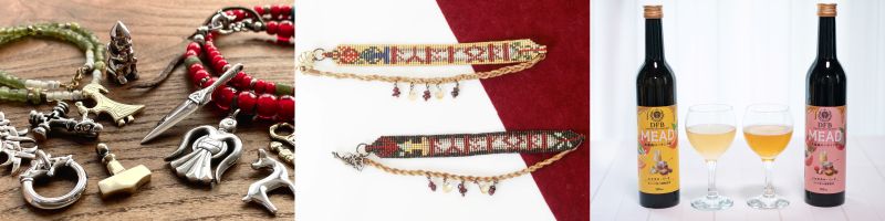 日本中がヴァイキングで溢れかえる日々を願って 2017 年に設立。1000 年前のヴァイキング時代を体感するマーケットやキャンプイベントを開催しながら、出土品を再現したアクセサリーや革製品などJAPAN MADE のヴァイキングアイテムを製作販売。ABC テレビ「リア突 WEST」出演、TV アニメ「ヴィンランド・サガ」プレミア上映会の衣装製作、映画「ノースマン」のコメントなど、ヴァイキングにもっと親しんでいただけるようメディア協力も。https://market.japanvikings.com/