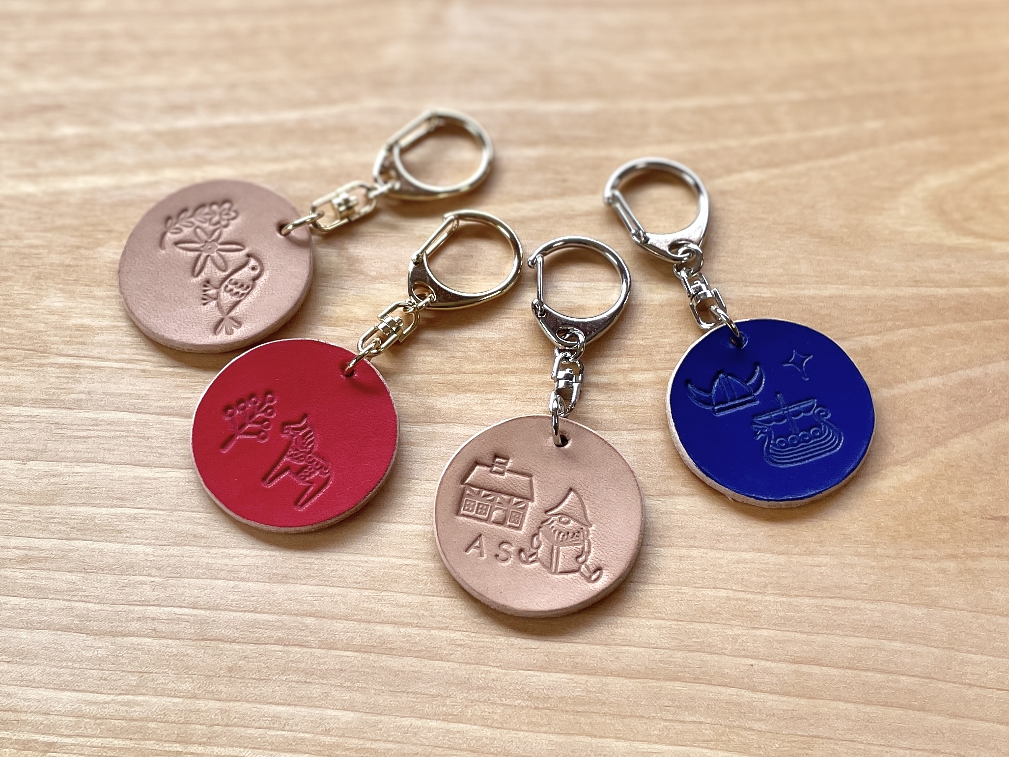 ④北欧模様を刻印!レザーキーホルダー作り 1個600円、2個1,000円