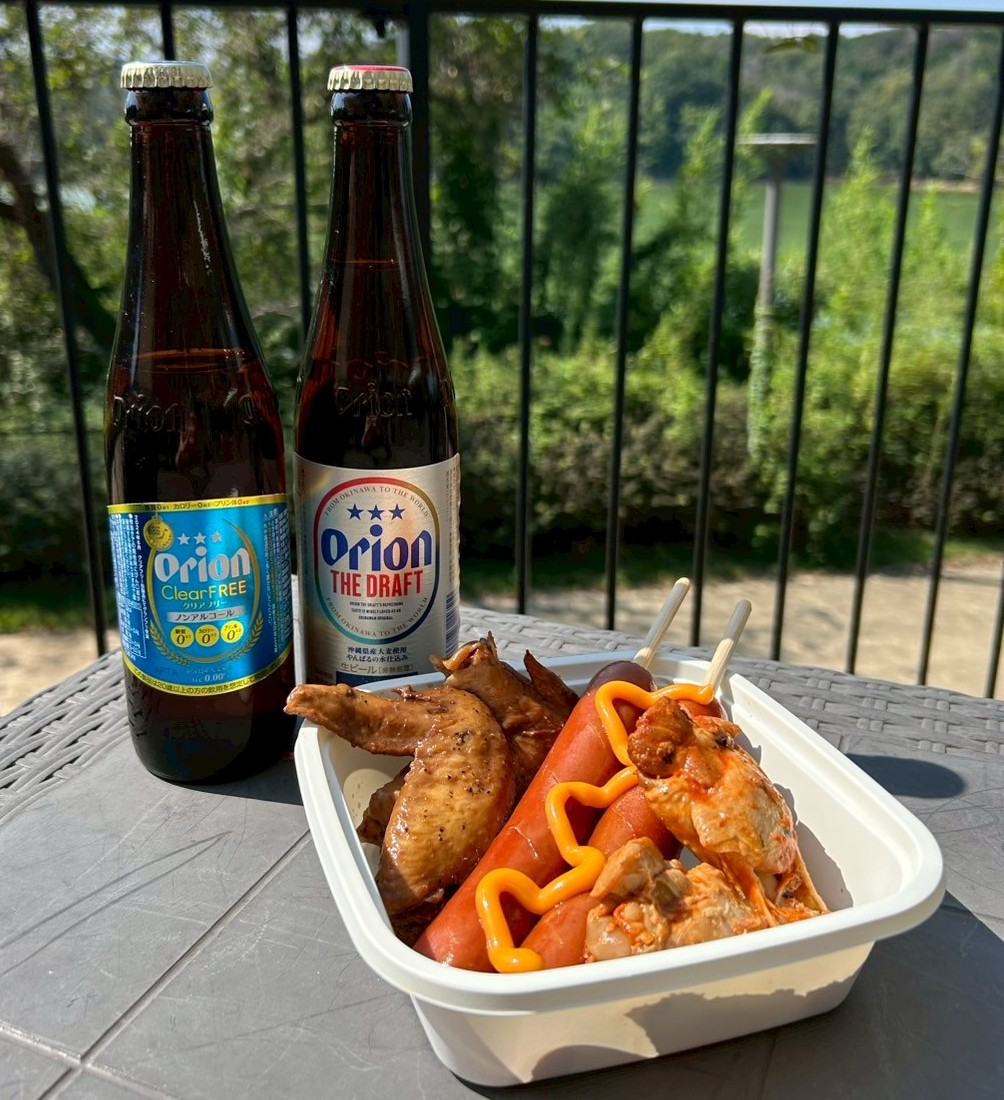 ヴァイキングの宴のように、仲間と一緒に骨付き肉とビールで乾杯!お好きなオリオンビール2杯、骨付きチキン4個とチーズフランク2本の満腹セット。