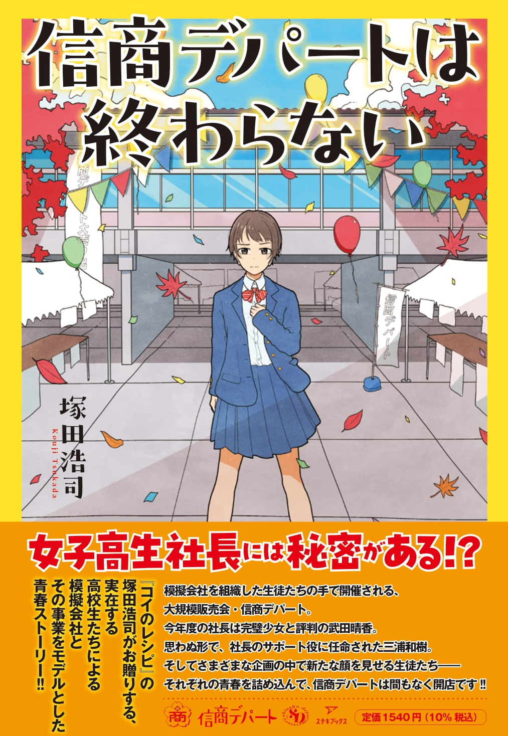 毎年、模擬会社を組織した高校生たちの手で開催される大規模販売会・信商デパート。今年の社長はちょっと訳アリで……? 長野県の高校で100年以上の伝統を持つ、実在のイベントをモデルとした、塚田浩司さん書き下ろし最新作『信商デパートは終わらない』が2025年10月15日に発売!!