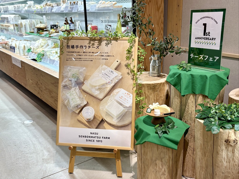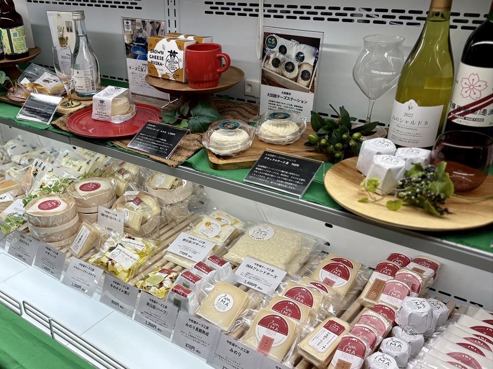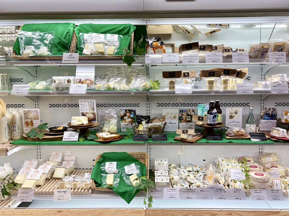 受賞歴のある自社製品等に加え那須地域のチーズ(大田原チーズズテーション/チーズ工房那須の森/今牧場チーズ工房/So-boku/フィンランドの森チーズ工房メッツァネイト/あまたにチーズ工房/新生酪農(栃木工場)を集めて最大45種類を展開します