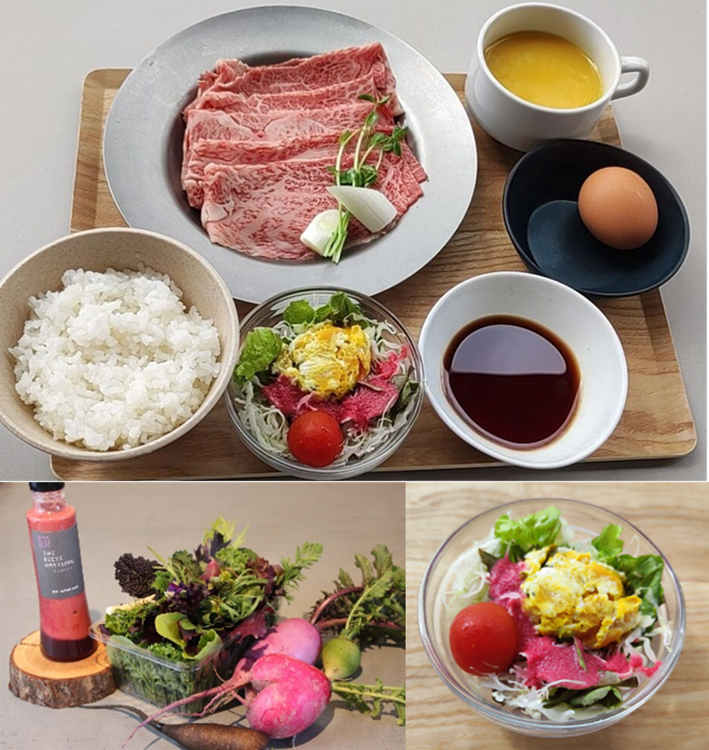のビーツで作った“自家栽培ビーツドレッシング”を「栃木県産黒毛和牛