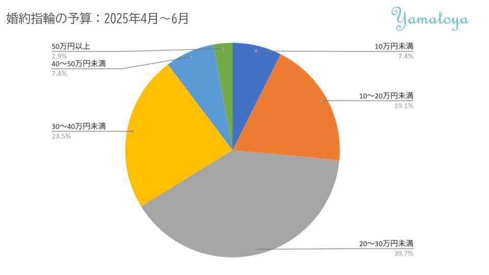 御殿場本店・浜松店・沼津店・富士店・裾野店の5店舗を運営する婚約指輪・結婚指輪の専門店「ヤマトヤ」(運営会社:株式会社大和屋時計店 所在地:静岡県御殿場市 代表取締役:髙橋史郎)は、2025年4月~6月にご来店されたお客様を対象に婚約指輪および結婚指輪の予算に関するアンケートを実施いたしました。
